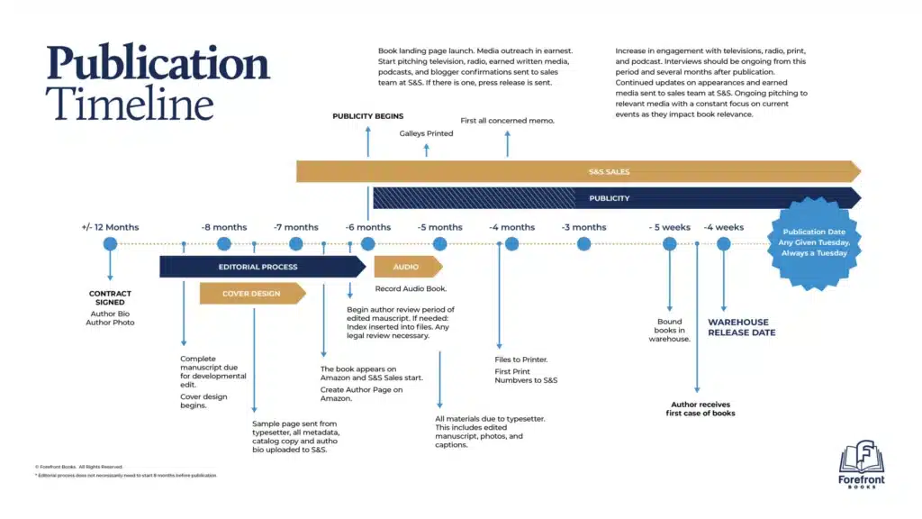 When you become one of our preferred authors, we will guide you through the process step by step. Below is our Publication Timeline, which will give you an idea of our process.